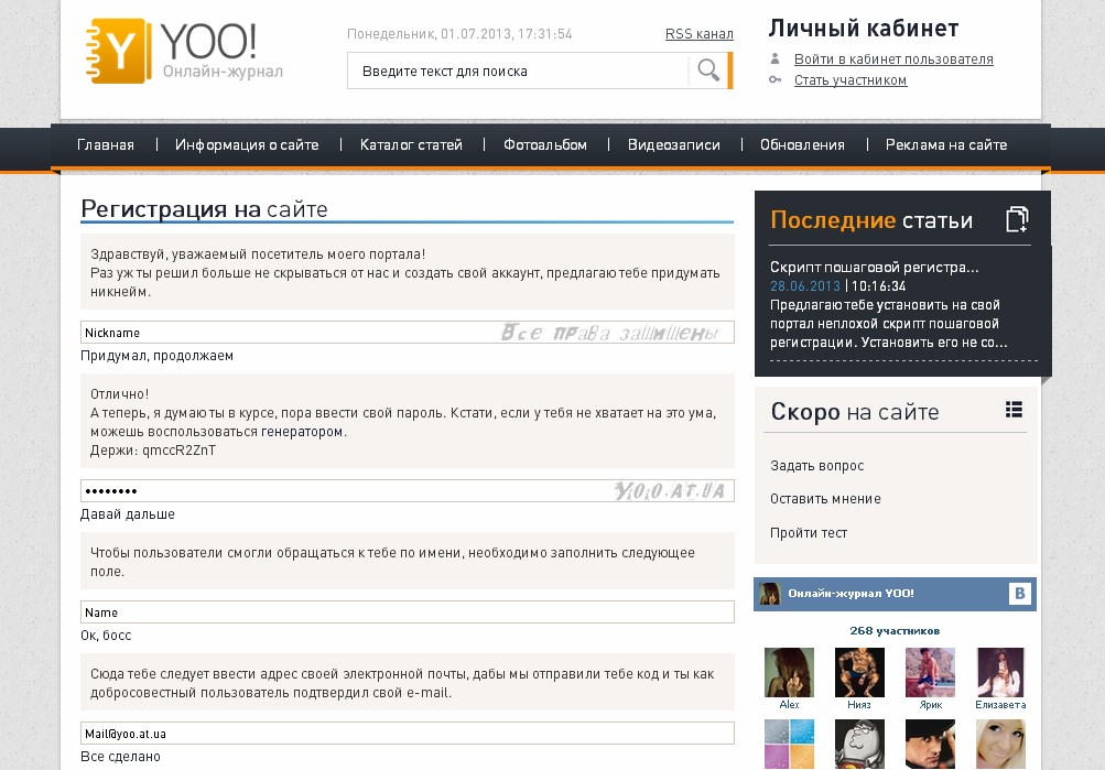 Пошаговая регистрация для uCoz